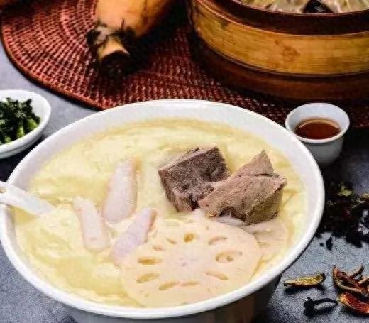 太原“头脑”的来历,但凡太原人都能讲出个七七八八,因为它和太原城最有名的奇士傅山先生关系密切。据说,“头脑”木字考证为“酘醪”,原属官方饮食制度。酘本义为酒再酿,醪为未去酒糟的甜酒,酘醪言醇浓之酒,谐音渐变为头脑。头脑早在明初,甚至宋元就已出现,如《金瓶梅》中有:“安排些鸡子肉圆子做了头脑与他扶头。〞又如《水浒传》里有:“那李小二从人从里撇了雷横,自出外面赶碗头脑去了。”清代褚人获《坚匏二集》有“头脑酒”一条,释宋人爱喝头脑酒。明代朱国祯《涌幢小品》记载:“凡冬月客到,以肉及杂味置大碗中,注热酒递客,名曰头脑酒,盖以避寒风也。考旧制,自冬至后至立春,殿前将军、甲士皆赐头脑酒……景泰初年,以大官不充,罢之。而百官及民间用之不改。”对此头脑酒,傅山是有家传认知与体验的。其六世祖傅天锡以春秋明经曾任临泉王府教授;曾祖傅朝宣还做了宁化王府的女婿和仪宾、承务郎;祖父傅霖是嘉靖壬戌科进士,历官知州、佥事、参议等;父亲傅之谟是位贡生,授徒教书乡里。在这样一个官宦世家、书香门第,傅山对明代官民食俗,感受必是深切的。故在母亲多病之时,博而专的傅山能汲古出新,术精如神,以晋地特产,创制名同而脉理近、寓疗于食的养生美味。其母陈氏常饮此汤,高寿八十有四。