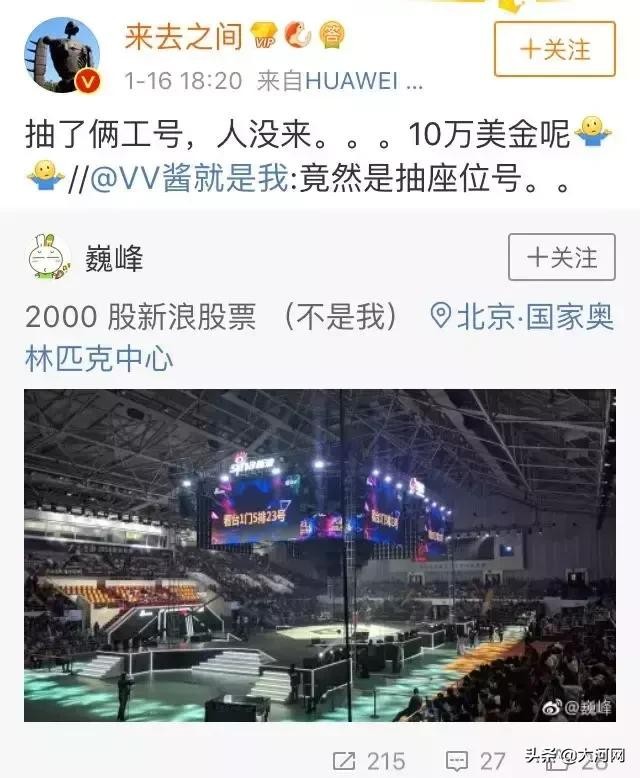 上图新浪员工的微博截图,据说当时现场抽奖时被抽中的员工不在场,于是重新抽奖,最终价值六十余万的2000股新浪股票被弃奖了五次,才被第六位锦鲤领走了。