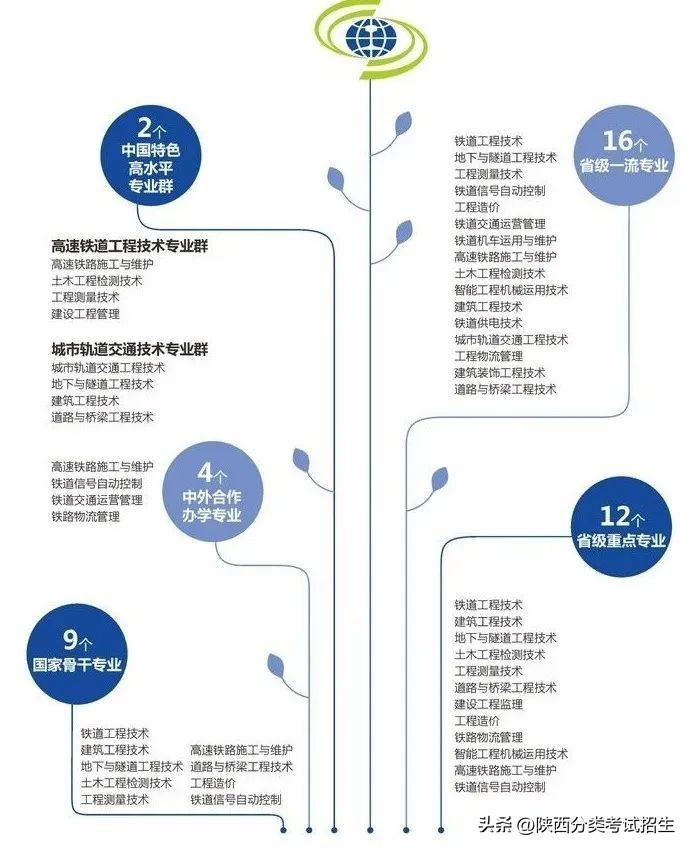 学校专业以铁路工程类为主干,以铁道运营管理及轨道装备制造为两翼,培养高铁、城轨、公路、建筑等基础设施建设及管理急需的高素质技术技能人才。