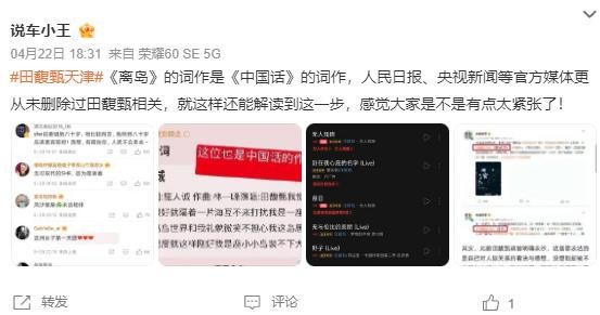 网传田馥甄的歌曲《离岛》在搞分裂,甚至传出被央视等官媒下架,不过官方层面并没有表态,最近有网友举报田馥甄,得到的回应是没有问题,是非曲直,相信大家心中有一把尺,会自己去衡量。