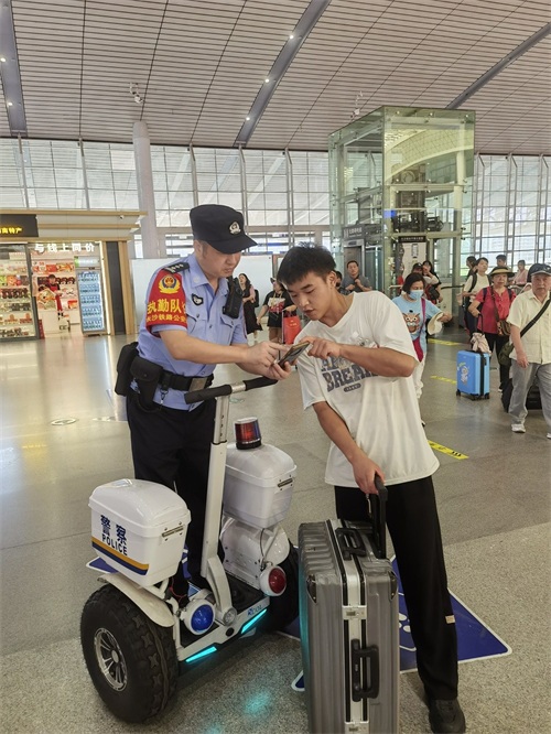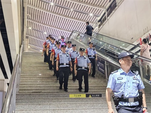 “夏季行动”以来,长沙南站派出所坚持警力前置、显性用警,最大限度将警力摆在面上,依托安检“钉子岗”,加大重点时段、重点区段、重点部位的巡逻防控力度,形成有效震慑,确保警情能够快速稳妥处置,使夏季治安打击整治行动有声势、有动作、有成效。该所以出站层、候车层、进站口、落客平台等为重点,联合武警、地方公安、特警开展联合清理、动态巡防和武装巡逻,切实提高见警率和管事率,以“两队一室”网格化管理为依托,针对辖区治安特点,采取“车巡+步巡+视频巡”的立体化巡防模式,多轮次组织警力,在东西广场、候车层、路地结合部、站区周边及高铁沿线开展夏夜治安巡查宣防集中统一行动,累计出动警力400余人次,检查重点部位360余处,排查整改各类安全隐患30余处,查获喊客拉客等违法人员10人,形成巡、查、宣、防齐发力,筑牢平安站区防护网。
