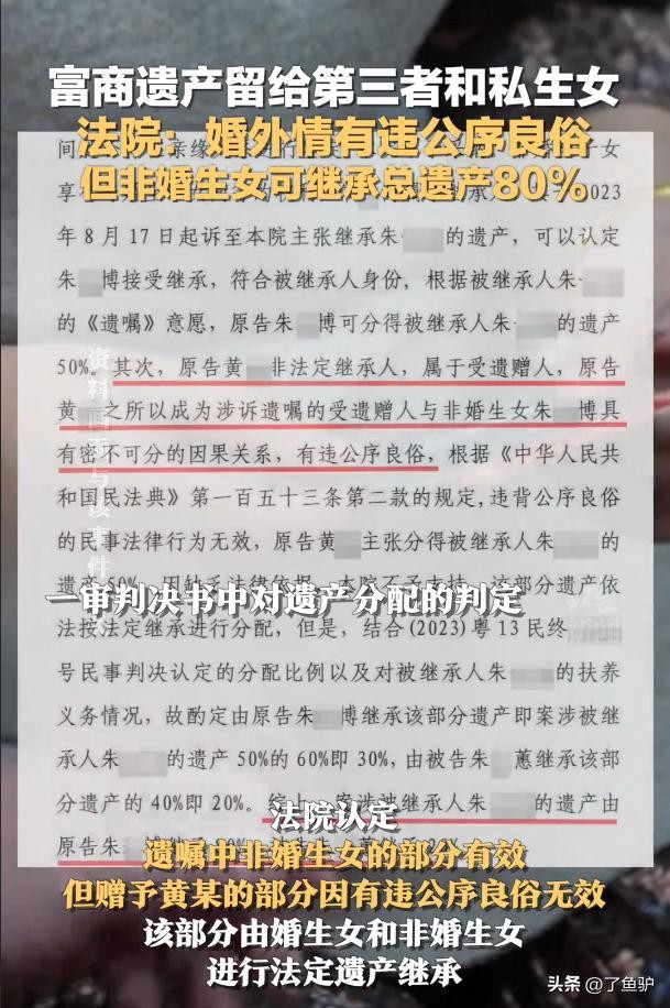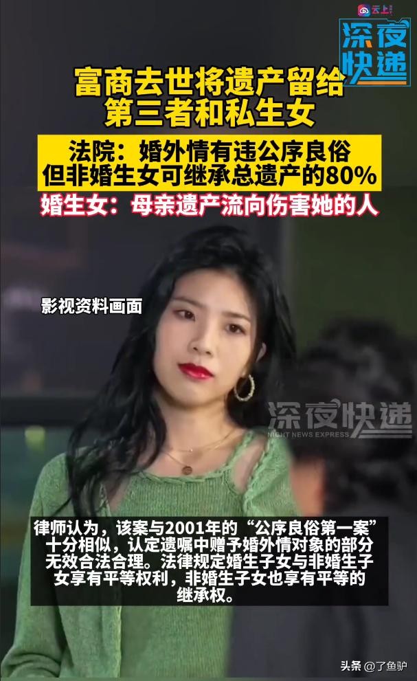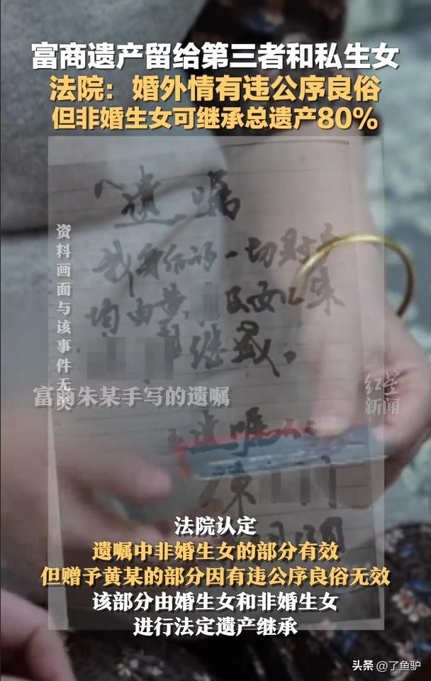 富商遗产留给第三者和私生女,法院:非婚生女可继承总遗产的80%