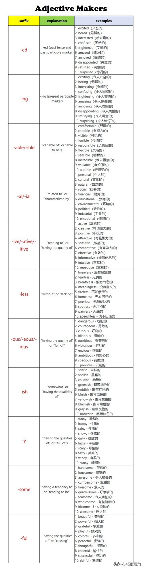 上次整理了常用的英语前缀巧记单词:学会词缀(affix), 事半功倍-Prefix(高频前缀),今天为大家整理一下常用的后缀。