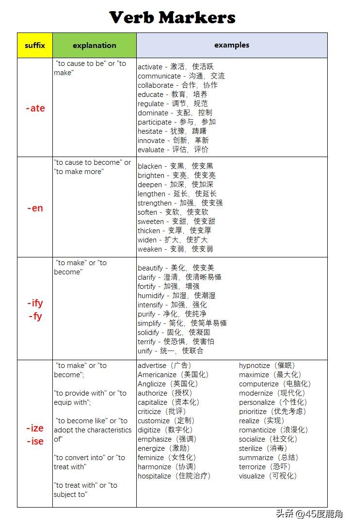 概念解析;后缀可以用于哪些词后?后缀的功能性分类记忆表 (Verb makers/ Adjective makers / Adverb makers)