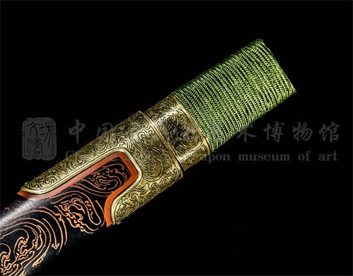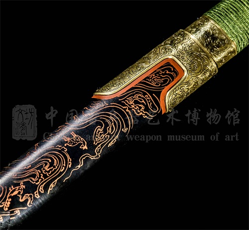 刀鞘软木,传承古法,披麻挂灰,再髹漆。朴素的黑漆着底,朱砂红勾勒线条,将汉代简洁、明了、大气的感觉勾勒出来。