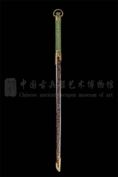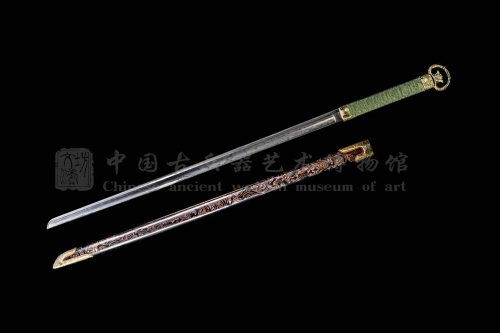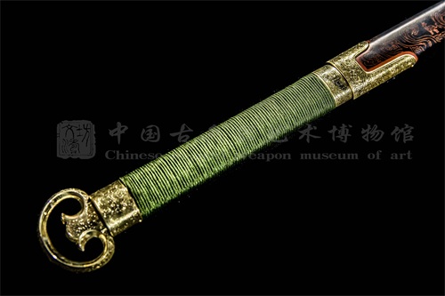 仪刀,多出现在重要的礼仪场合,刀修长大气,形制上“施龙凤环 ”,承袭汉环首刀式样。装饰上极尽奢华,精美的环首不仅是威仪的体现,更是中国冷兵器艺术的结晶。