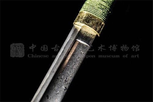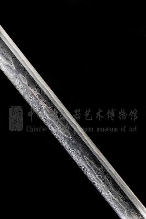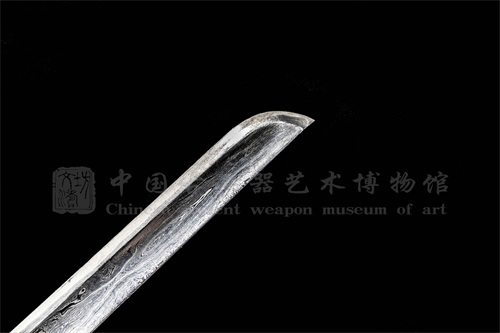 此刀刀姿整体呈内弧形、刀背厚实,适于双手持握劈砍。刀身材质根据馆藏汉刀标本金属分析后,选取汉代残剑三件及高碳钢等贵金属折叠锻打,子夜淬火后回火冷锻,刃部夹钢,硬度极佳。