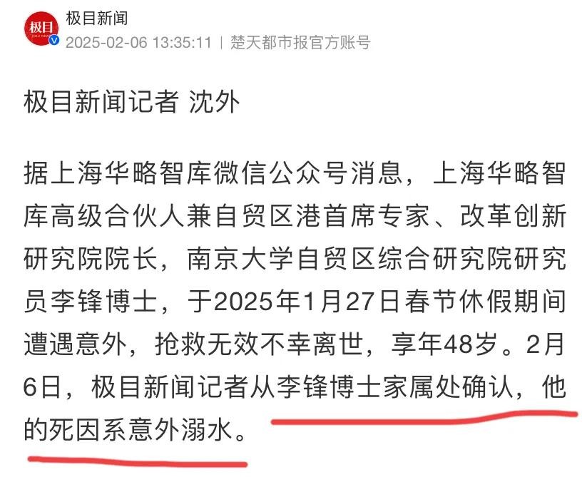 后续!48岁博士李锋去世,家属透露死因游泳溺水,更多细节曝光