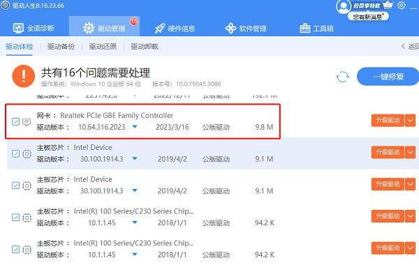 如果更新驱动程序软件,可以选择“驱动人生”来自动搜索并安装最新网卡驱动程序。此外驱动人生也支持驱动备份和驱动卸载,方便用户进行选择自己最想要的驱动程序。