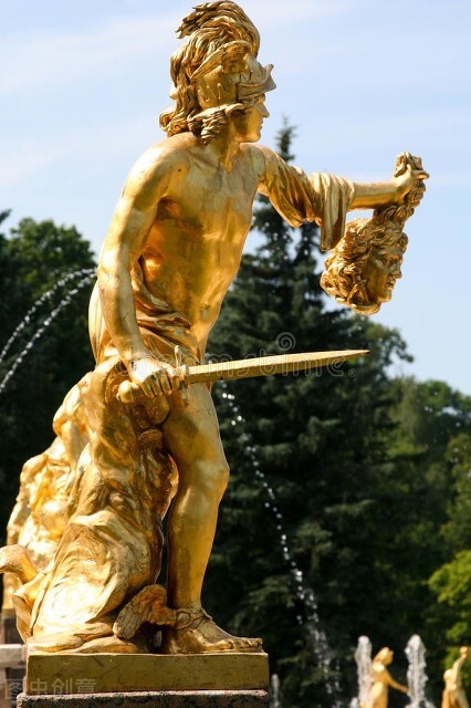 珀耳修斯长大ChengRen后,开启了冒险的旅程。他威胁众怪ZhiWang而得到了去仙女那里的路,并从仙女那里拿走了三件奇宝:一双飞鞋、一个用做衣袋的皮囊、一顶狗皮做的可以隐身的头盔。此外,他还得到了一个青铜盾装备好后,他就去找肉体凡胎的美杜莎想要杀死她。当他找到美杜莎时,他发现这个怪物正在酣睡因为凡是注视过美杜莎的人都要变成石头。于是,机智的珀耳修斯从闪光的青铜盾里搜寻她的面影,用剑砍掉了这怪物的头。然后,他把美杜莎的头装在皮囊里,戴上头盔,一直向西飞行。