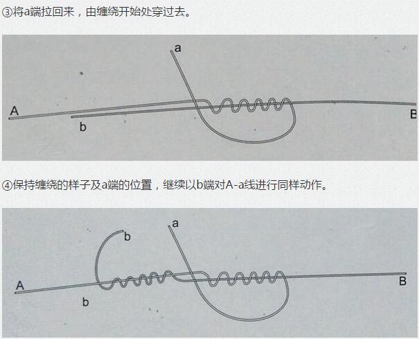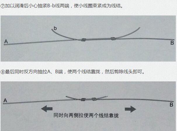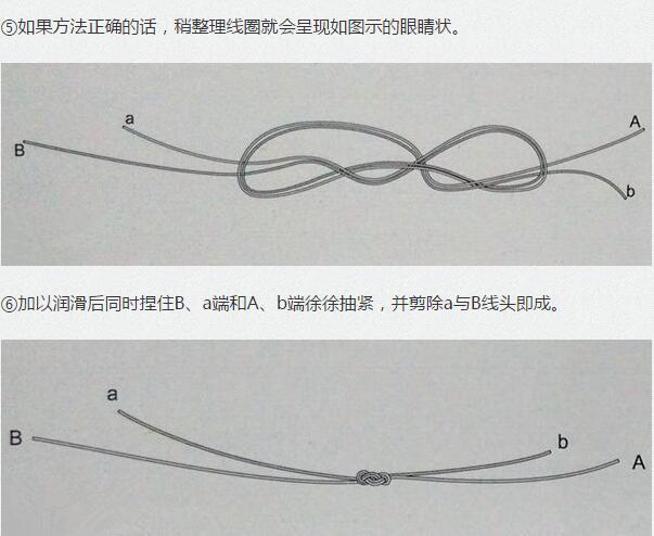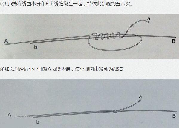 这两种基本的线结,是用的最多的,也是用的最为广泛的线结。可以说,这两种线结是新手掌握的一项基本要领,具体如下: