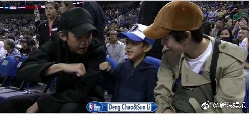 据悉,等等的正面照是邓超和孙俪带着儿子等等去看NBA球赛时曝光的,邓超一身黑衣现身,娘娘戴小黄帽甜笑尽显娇俏。当现场摄像机走近时,夫妇俩大方对着镜头指给儿子看,等等大眼圆圆,和爸爸撞拳的样子超可爱der~